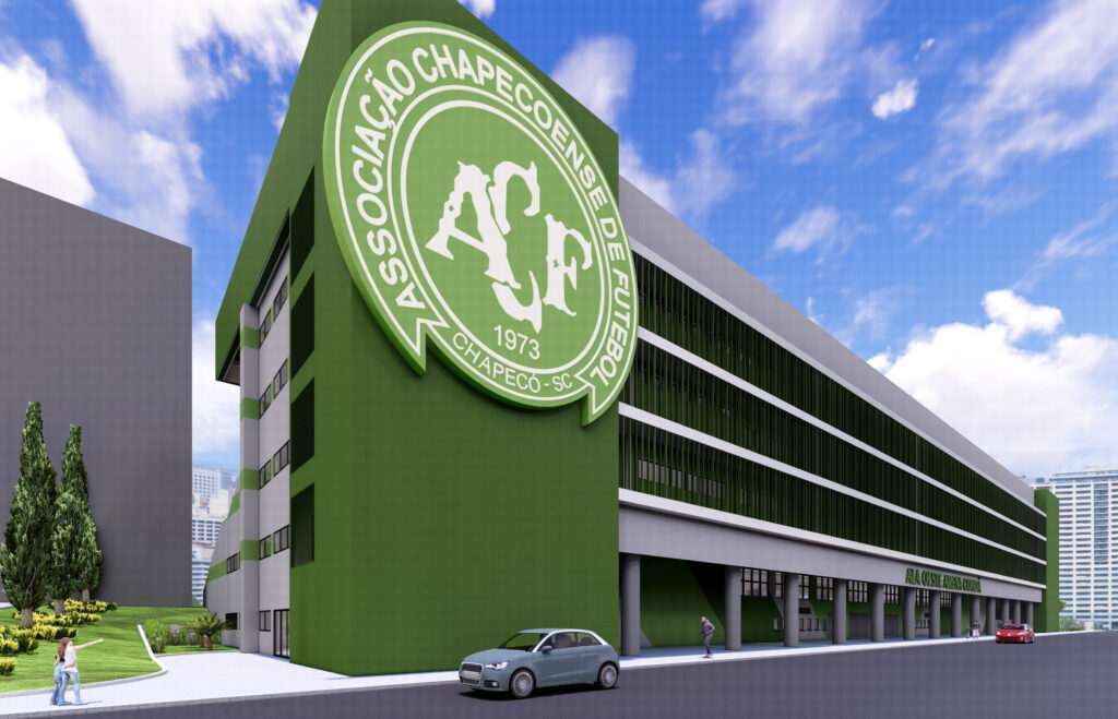 Modernização da Arena Condá, com 25.831,25 m² em 10 pavimentos. Projetos executivos incluindo arquitetura, estrutura, elétrica, SPDA, PPCI e impermeabilização.